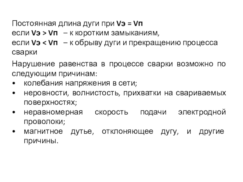 Нарушение равенства в процессе сварки возможно по следующим причинам: