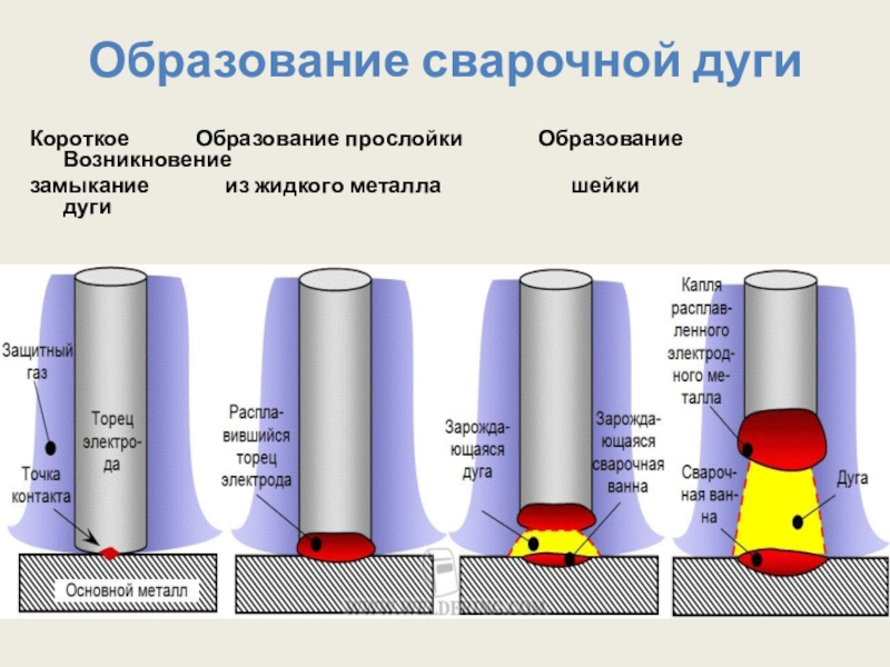 б) процесс образования электрически заряженных частиц в столбе дуги