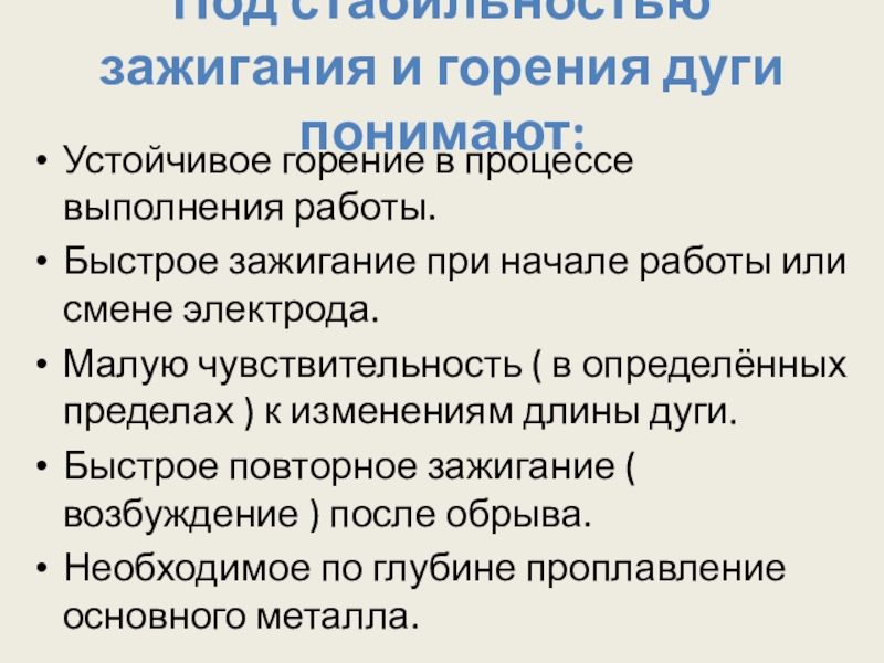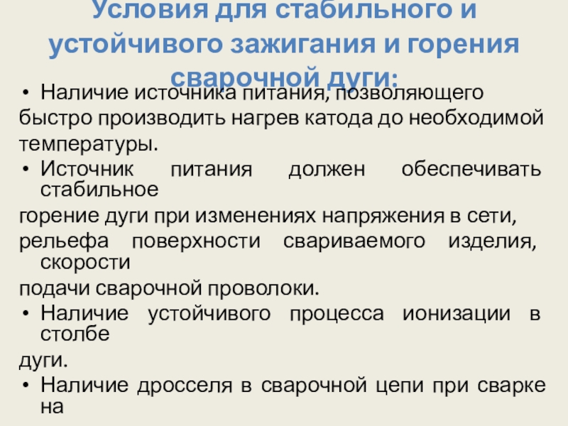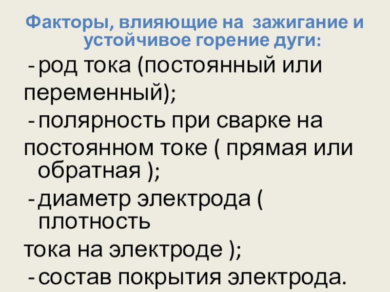 5.Факторы, влияющие на устойчивое зажигание и горение дуги.