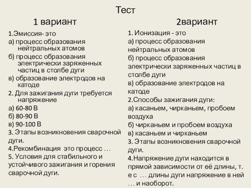 4.Напряжение дуги находится в прямой зависимости от её длины, т.е с … длины дуги напряжение в ней … и наоборот.