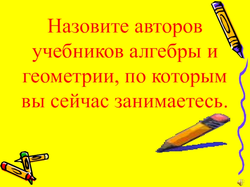 Слайд 5Назовите авторов учебников алгебры и геометрии, по которым вы сейчас занимаетесь.