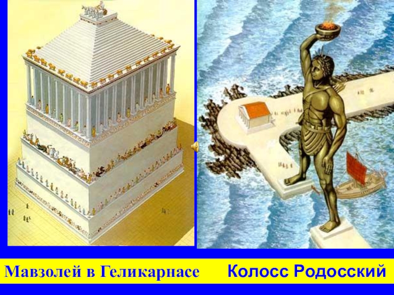 Слайд 32Мавзолей в Геликарнасе Колосс Родосский