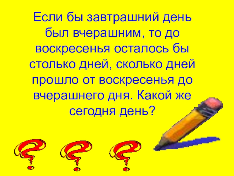 Слайд 63Если бы завтрашний день был вчерашним, то до воскресенья осталось бы