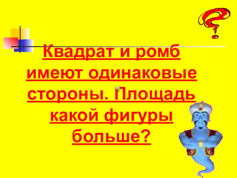 Слайд 54Квадрат и ромб имеют одинаковые стороны. Площадь какой фигуры больше?
