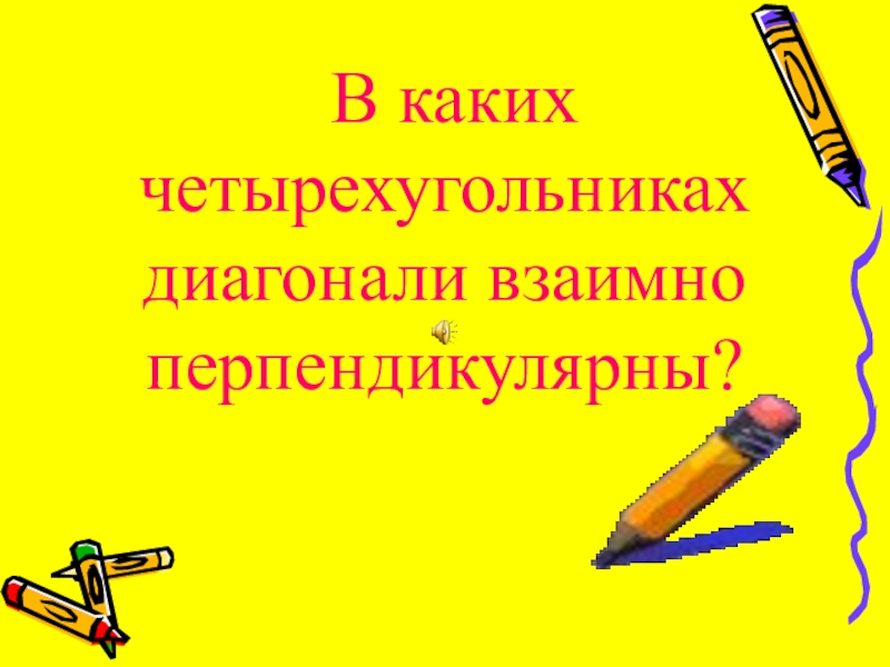 Слайд 17 В каких четырехугольниках диагонали взаимно перпендикулярны?