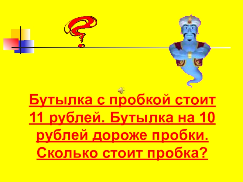 Бутылка с пробкой стоит 11 рублей. Бутылка на 10 рублей дороже