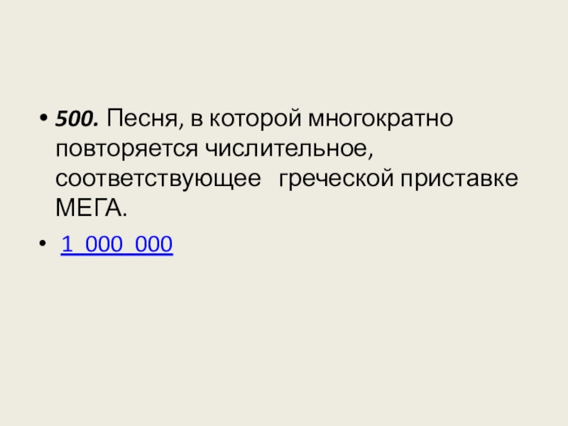500. Песня, в которой многократно повторяется числительное, соответствующее греческой приставке