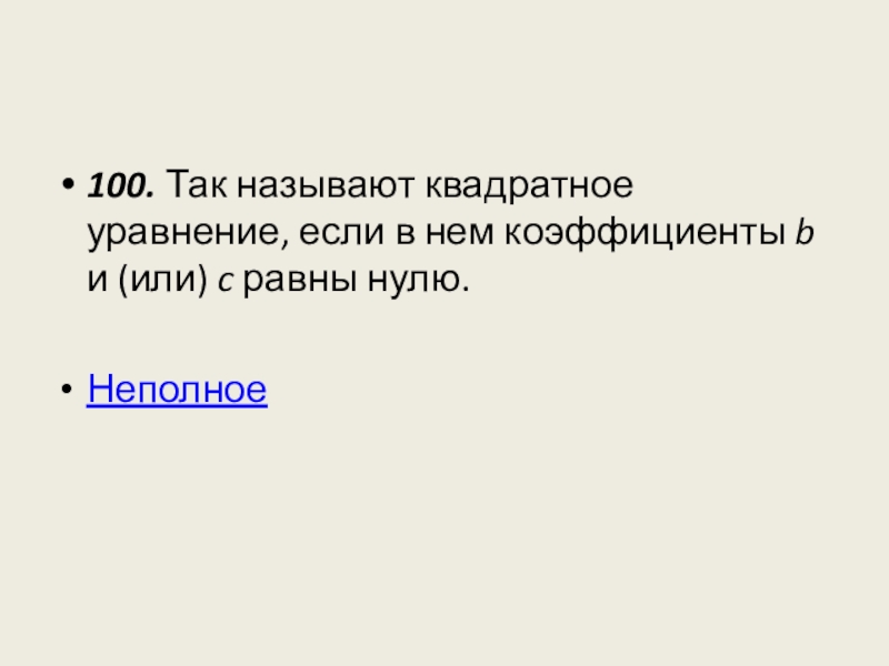 100. Так называют квадратное уравнение, если в нем коэффициенты b и