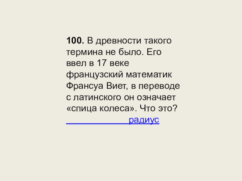 веке французский математик Франсуа Виет, в переводе с латинского он означает «спица колеса». Что это?