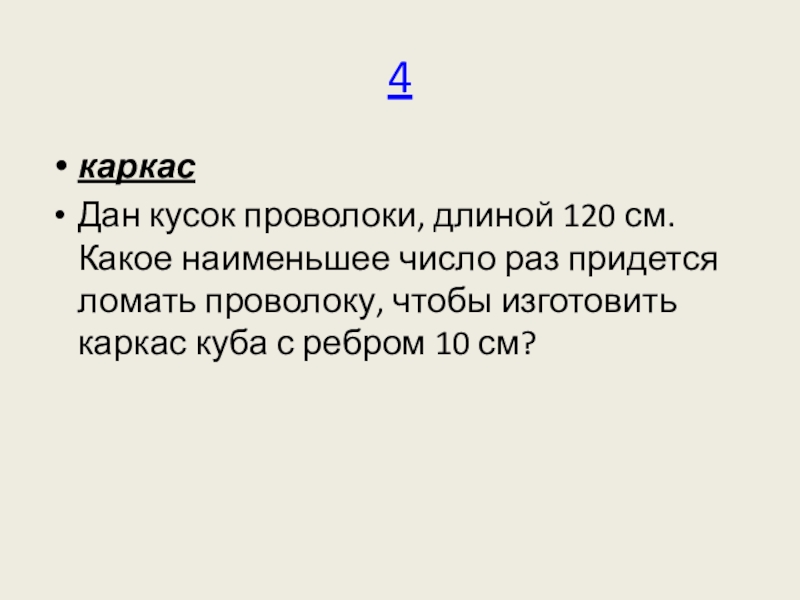 Дан кусок проволоки, длиной 120 см. Какое наименьшее число раз придется