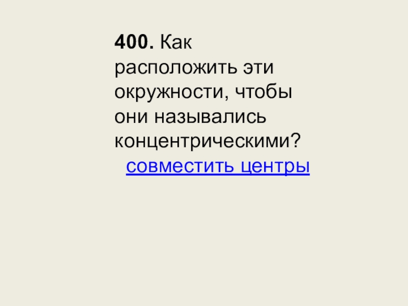 Слайд 13400. Как расположить эти окружности, чтобы они назывались концентрическими?