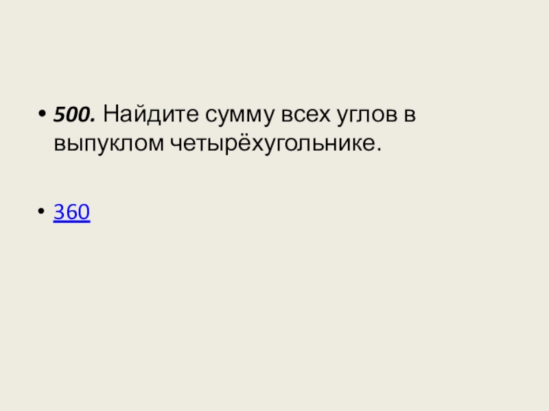 500. Найдите сумму всех углов в выпуклом четырёхугольнике.