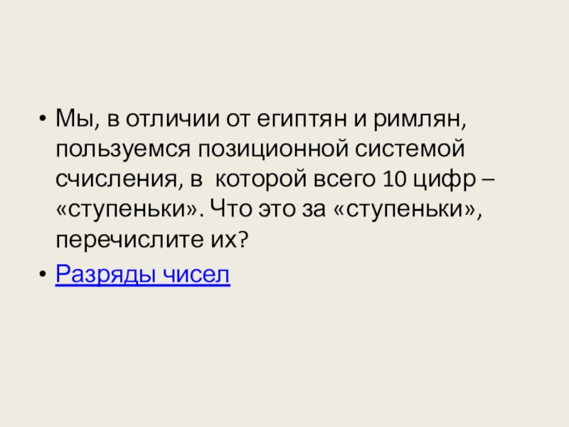 Мы, в отличии от египтян и римлян, пользуемся позиционной системой счисления,