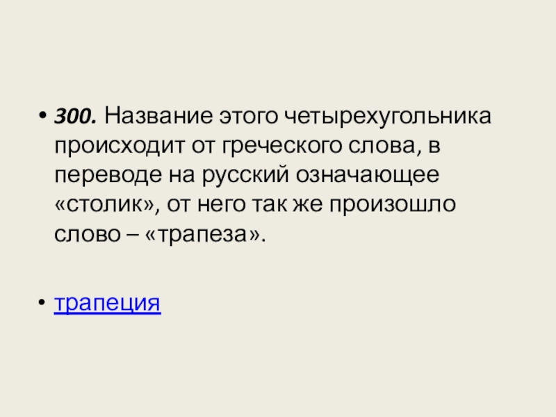 300. Название этого четырехугольника происходит от греческого слова, в переводе на