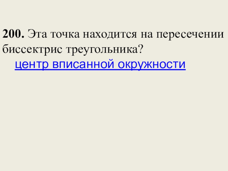 Слайд 3200. Эта точка находится на пересечении биссектрис треугольника?