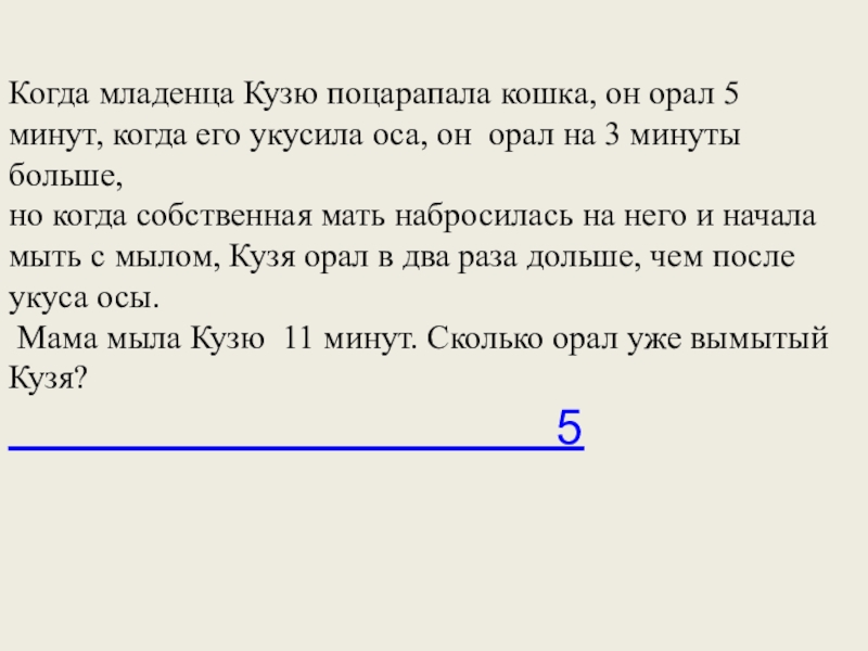 Мама мыла Кузю 11 минут. Сколько орал уже вымытый Кузя?