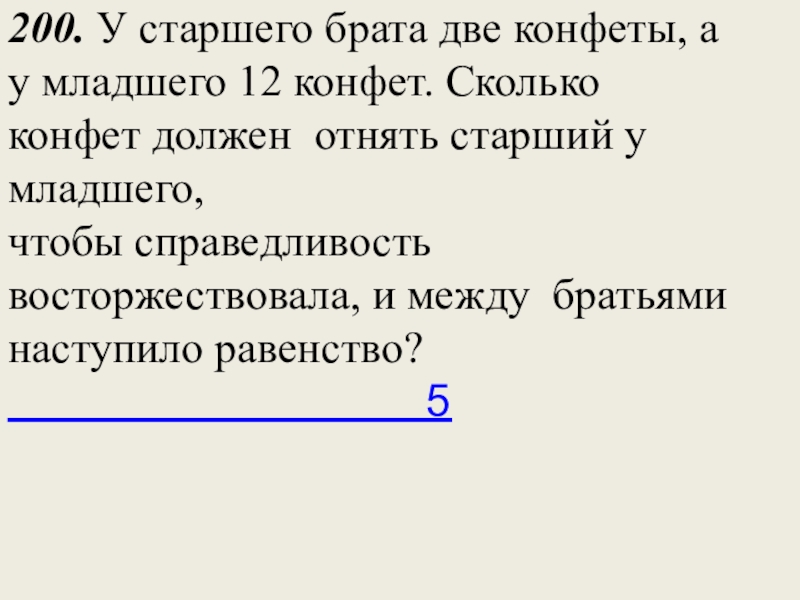 Слайд 12200. У старшего брата две конфеты, а у младшего 12 конфет.