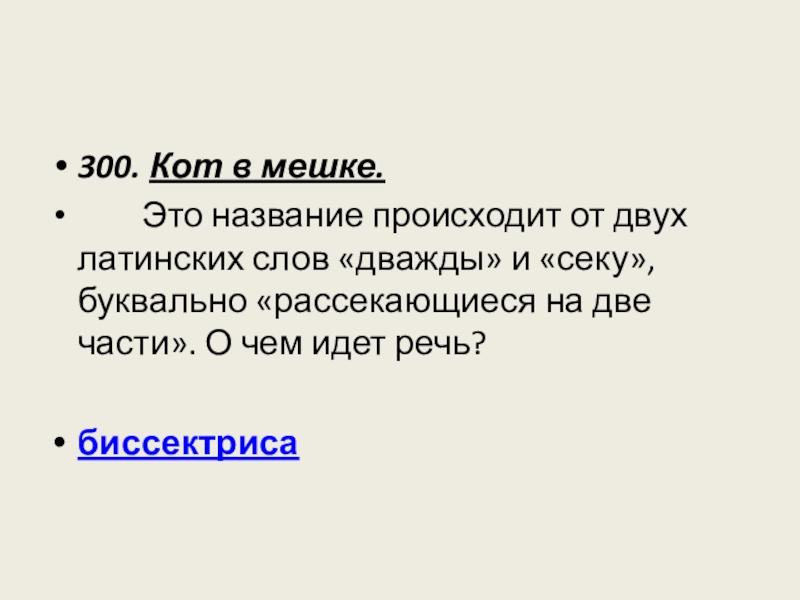 двух латинских слов «дважды» и «секу», буквально «рассекающиеся на две части». О чем идет речь?