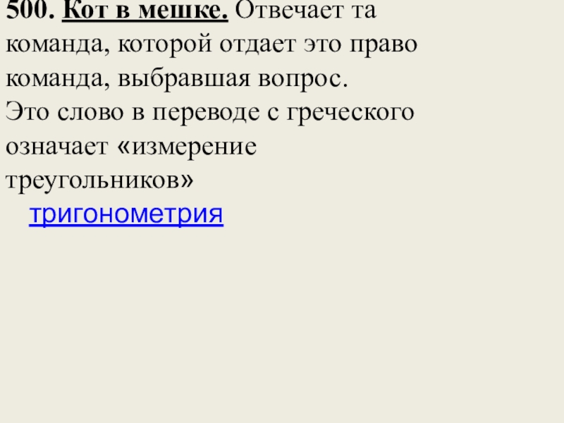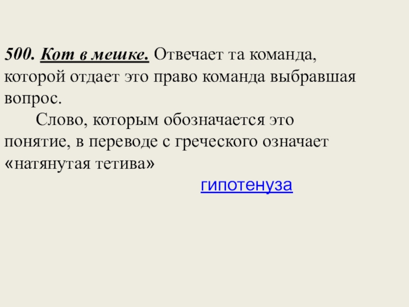 Слайд 19500. Кот в мешке. Отвечает та команда, которой отдает это право