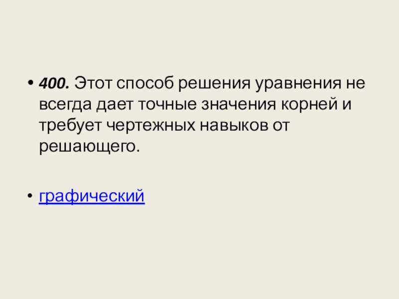 400. Этот способ решения уравнения не всегда дает точные значения корней