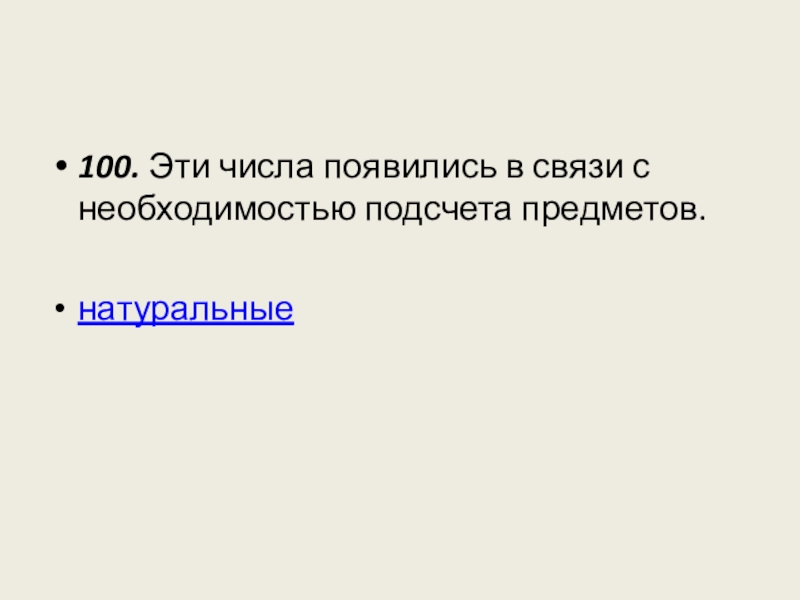 100. Эти числа появились в связи с необходимостью подсчета предметов.