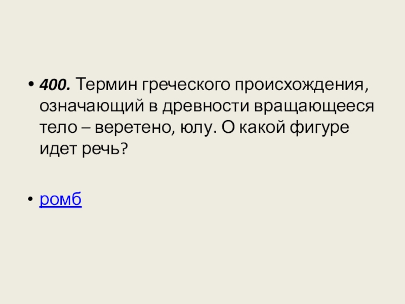 400. Термин греческого происхождения, означающий в древности вращающееся тело – веретено,