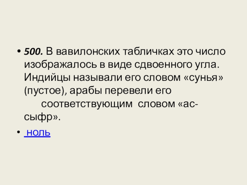 500. В вавилонских табличках это число изображалось в виде сдвоенного угла.