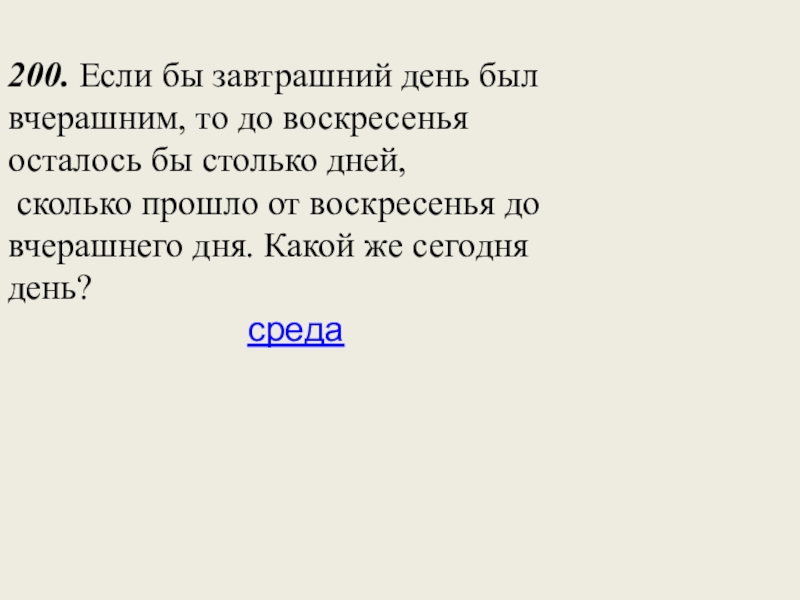 Слайд 18200. Если бы завтрашний день был вчерашним, то до воскресенья осталось