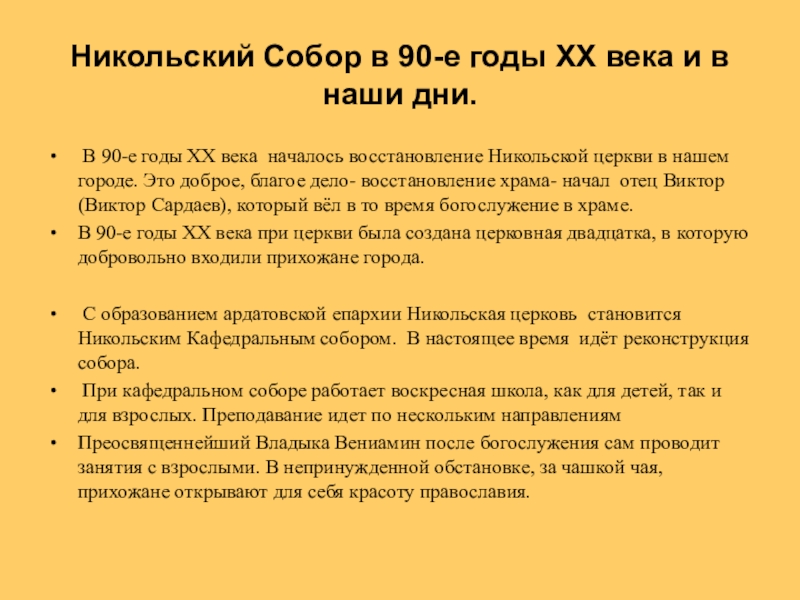 Слайд 26Никольский Собор в 90-е годы XX века и в наши дни.