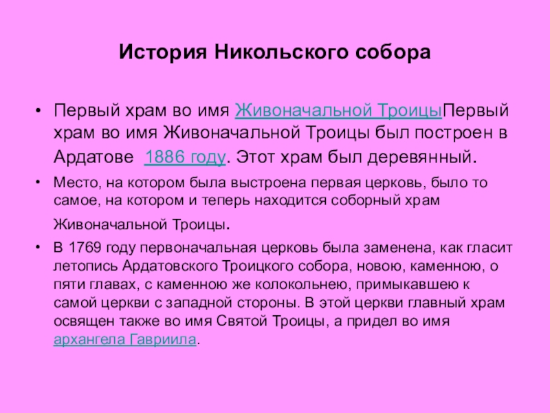 Живоначальной Троицы был построен в Ардатове 1886 году. Этот храм был деревянный.