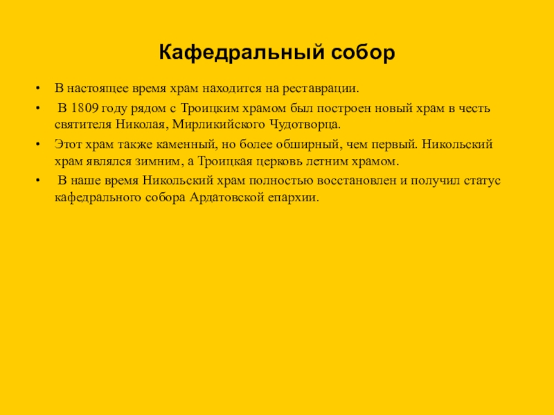 С образованием ардатовской епархии Никольская церковь становится Никольским Кафедральным собором. В настоящее время идёт реконструкция собора.