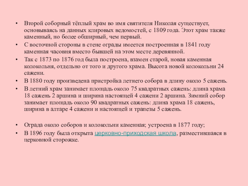 В 1880 году произведена пристройка летнего собора в длину около 5 сажень.