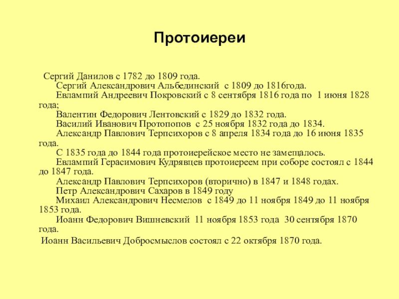 С 1835 года до 1844 года протоиерейское место не замещалось.