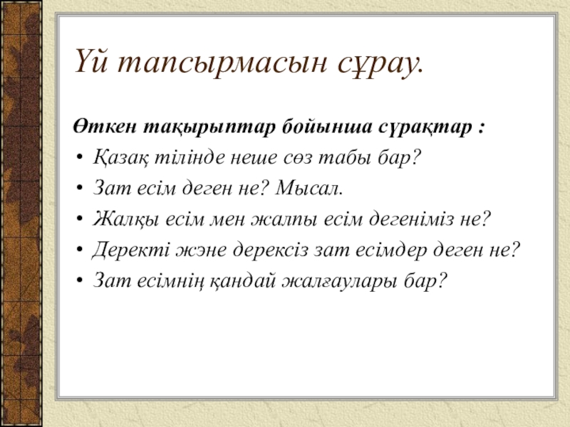 Слайд 7Сын есімнің мынадай маңызды белгілері болады: