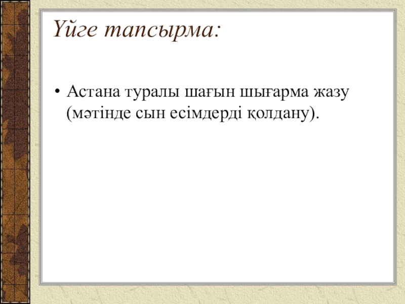 Астана туралы шағын шығарма жазу (мәтінде сын есімдерді қолдану).