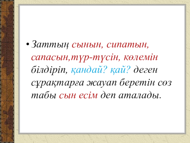 Слайд 8Сын есім қандай? қай? деген сұрақтарға жауап береді.