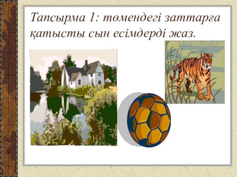 Слайд 10Тапсырма 1: төмендегі заттарға қатысты сын есімдерді жаз.