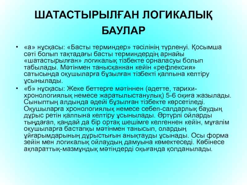 Слайд 36ШАТАСТЫРЫЛҒАН ЛОГИКАЛЫҚ БАУЛАР