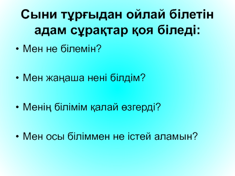 Слайд 16Сыни тұрғыдан ойлай білетін адам сұрақтар қоя біледі: