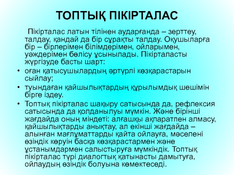 Слайд 26ТОПТЫҚ ПІКІРТАЛАС