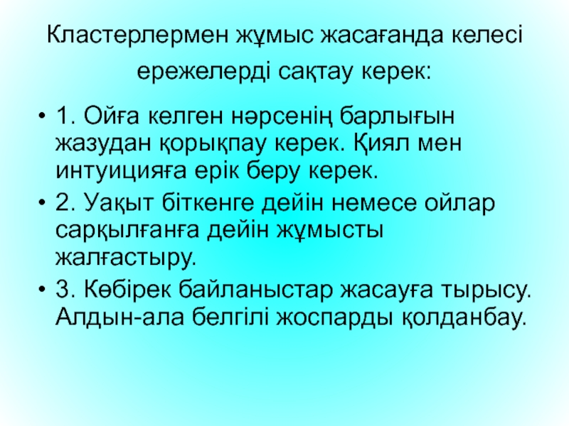 Слайд 31Кластерлермен жұмыс жасағанда келесі ережелерді сақтау керек: