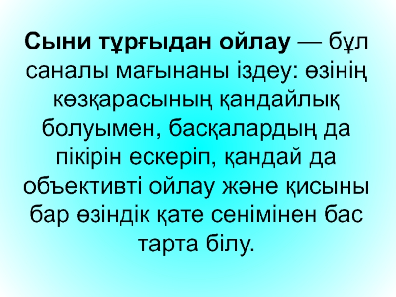 Слайд 15Сыни тұрғыдан ойлау — бұл саналы мағынаны іздеу: өзінің көзқарасының қандайлық