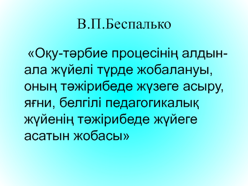 яғни, белгілі педагогикалық жүйенің тәжірибеде жүйеге асатын жобасы»