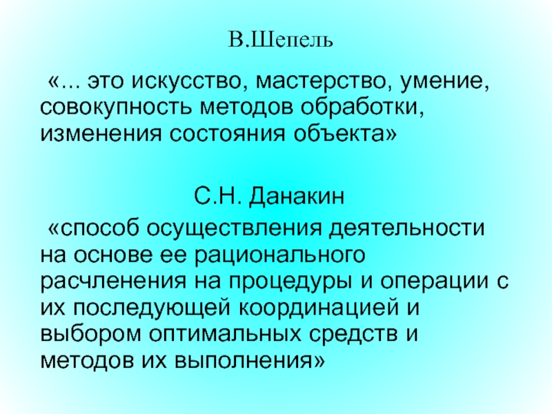 «... это искусство, мастерство, умение, совокупность методов обработки, изменения состояния