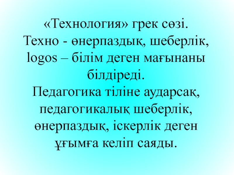 Техно - өнерпаздық, шеберлік, logos – білім деген