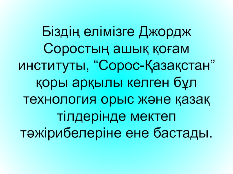 Слайд 12Біздің елімізге Джордж Соростың ашық қоғам институты, “Сорос-Қазақстан” қоры арқылы келген