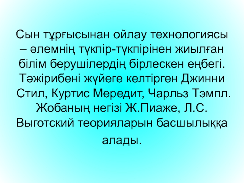 еңбегі. Тәжірибені жүйеге келтірген Джинни Стил, Куртис Мередит, Чарльз Тэмпл. Жобаның негізі Ж.Пиаже, Л.С.Выготский теорияларын басшылыққа алады.