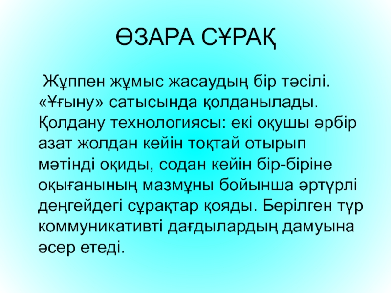 Слайд 27ҮЗІЛІСТЕРМЕН ОҚУ ЖӘНЕ БЛУМ СҰРАҚТАРЫ