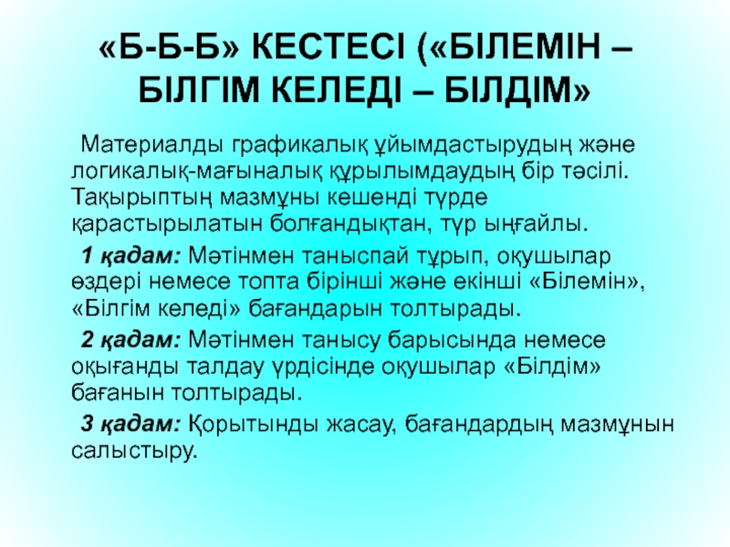 Слайд 37«Б-Б-Б» КЕСТЕСІ («БІЛЕМІН – БІЛГІМ КЕЛЕДІ – БІЛДІМ»