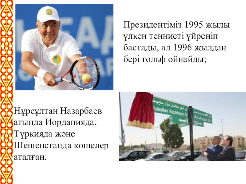 Нұрсұлтан Назарбаев атында Иорданияда, Түркияда және Шешенстанда көшелер аталған.